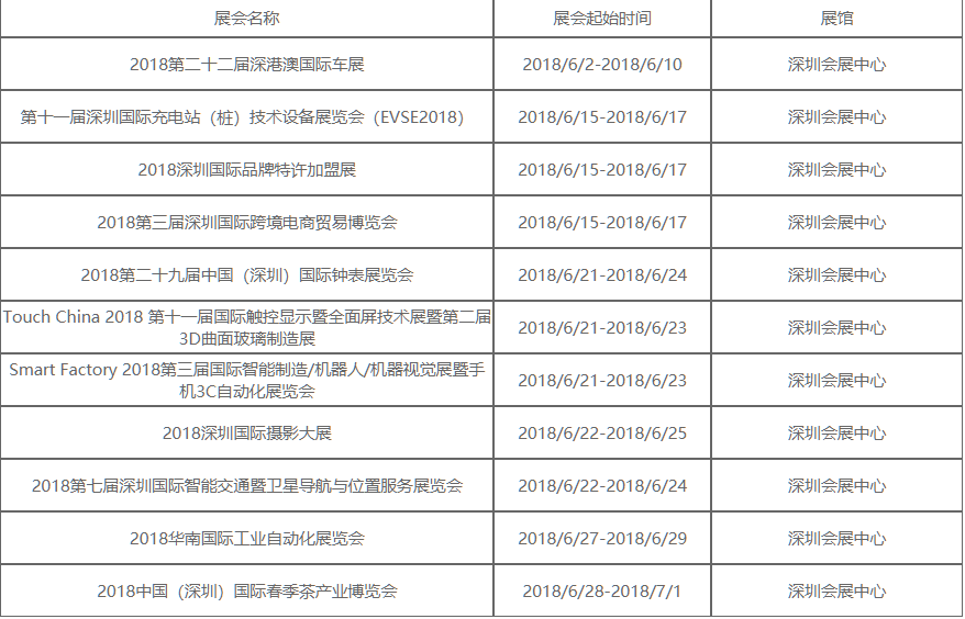 下面為您介紹2018年6月深圳展會(huì )排期。